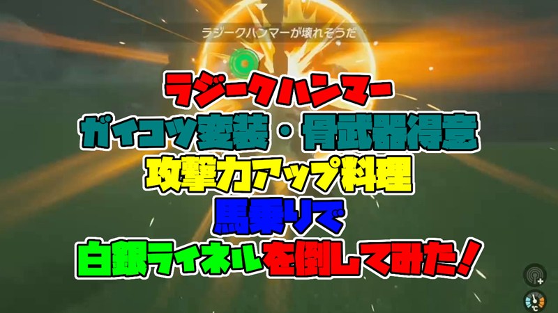 ラジークハンマー、ガイコツ変装・骨武器得意、攻撃力アップ料理、馬乗りで白銀ライネルを倒してみた!