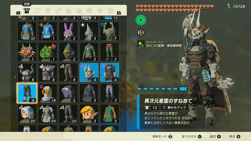 異次元悪霊の兜、異次元悪霊の鎧、異次元悪霊のすねあてを装着します。すると、セットボーナスでガイコツ変装・骨武器得意が付与されます。
