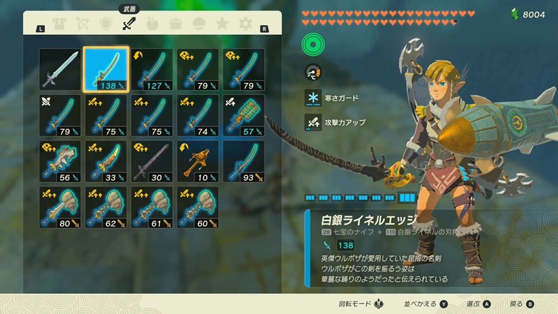白銀ライネルエッジの攻撃力高いので、こいつを装備します。