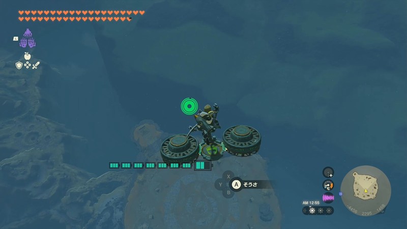 空島の真上まできたら、バイクは捨てます。