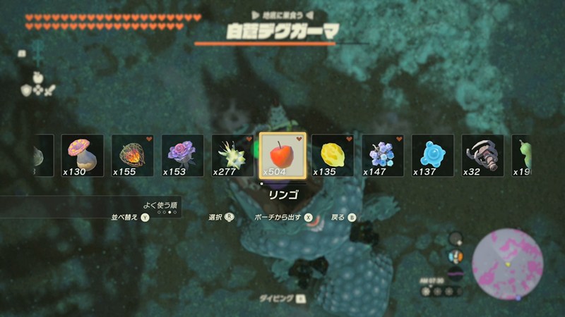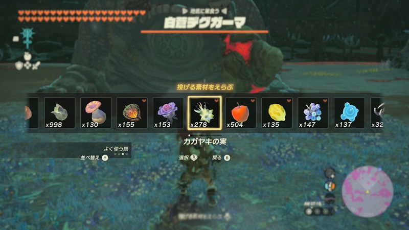 デグガーマは口を大きく開くので、リンゴをデグガーマの口へ落とします。